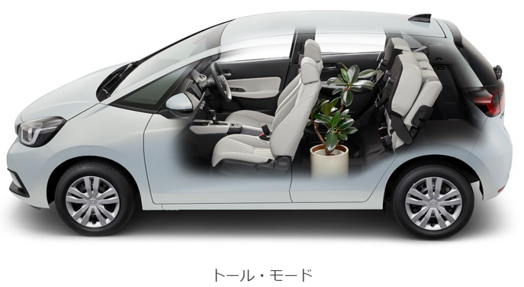 また、トールモードという後部の座席を跳ね上げることによって高さがある荷物を後部座席に収納することができます。